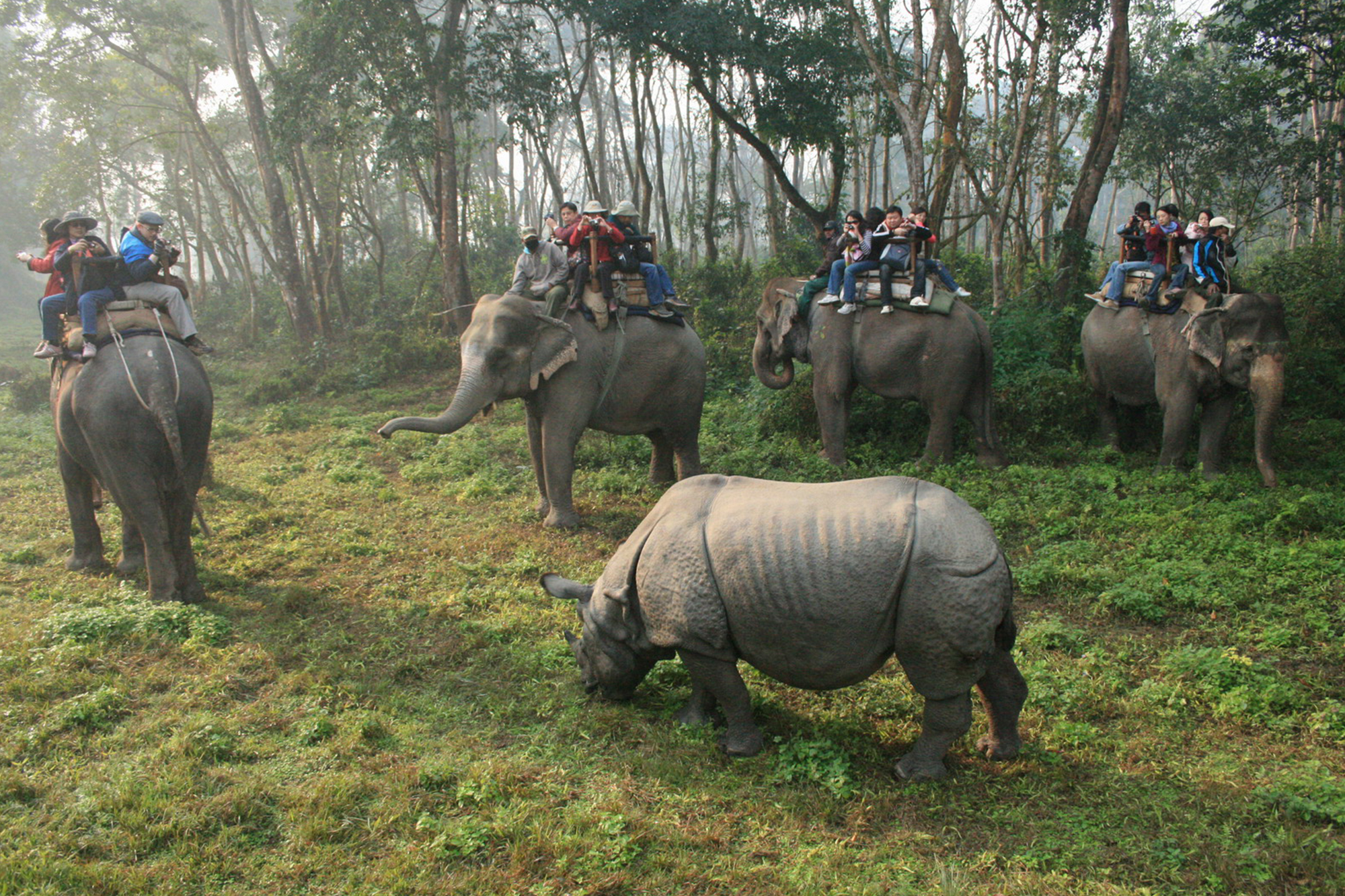 National Park activities including elephant safari, tharu culture show. O/N at Resort on Full board.